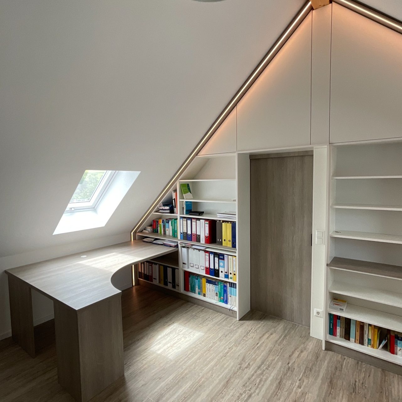 Mit maßgefertigter Büroeinrichtung vom Tischler entstehen Arbeitsräume, die funktional und repräsentativ zugleich sind. Empfangsbereiche, Chefbüros, Konferenzräume und Arbeitsplätze werden mit Schreibtischen, Aktenschränken, Regalen und Stauraumlösungen ausgestattet, die exakt zu deinem Unternehmen passen. Ob modernes Office‑Design oder bodenständige Holzoptik: Wir schaffen Büromöbel nach Maß, die Ordnung bringen und produktives Arbeiten unterstützen – im Unternehmen und im Homeoffice.