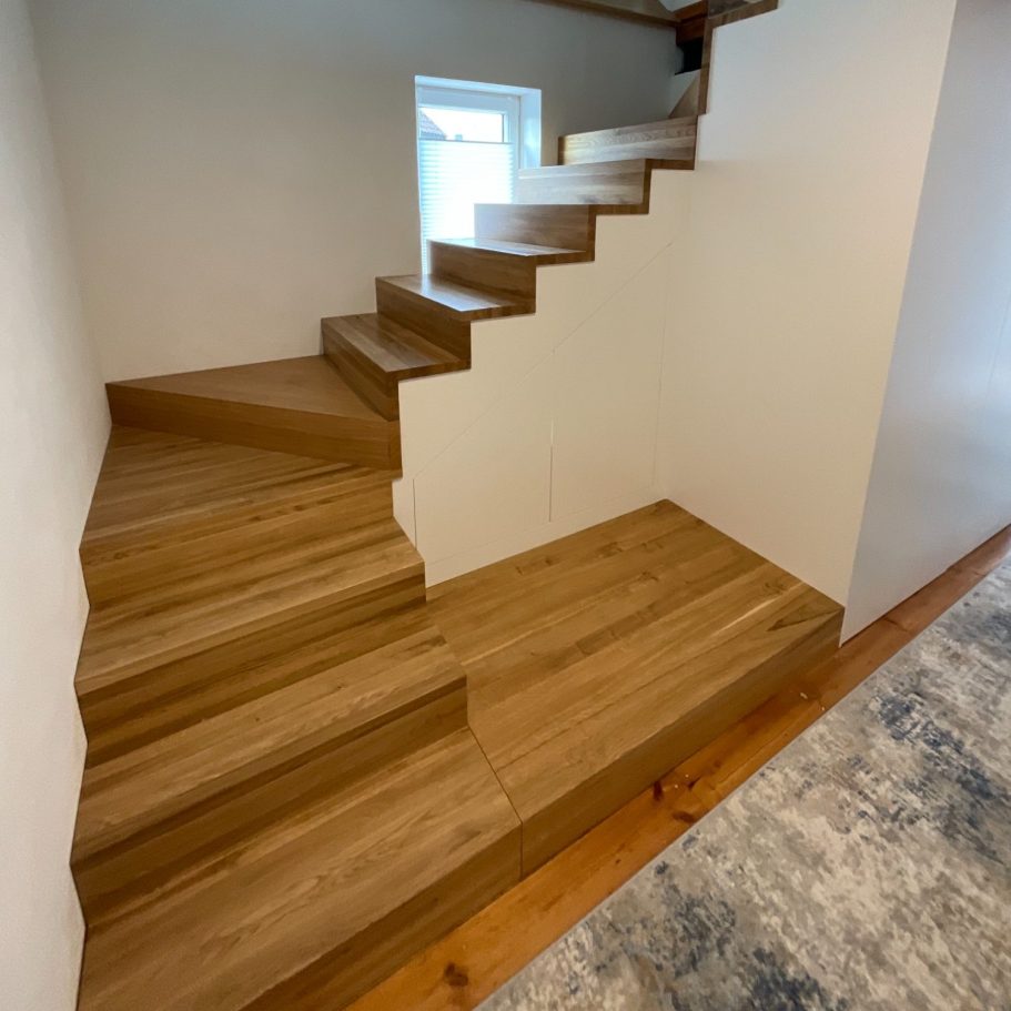 Eine Holztreppe vom Tischler ist zugleich Funktionselement und Gestaltungselement. Wir planen und bauen Innentreppen, Wendeltreppen, Wangentreppen und modern gestaltete Treppen aus Massivholz – abgestimmt auf Architektur, Sicherheit und Optik. Geländer, Handläufe und Treppenstufen werden so ausgeführt, dass sie komfortabel begehbar sind und sich harmonisch in dein Wohnkonzept einfügen. Auch Treppenrenovierungen und der Austausch einzelner Bauteile setzen wir präzise um.