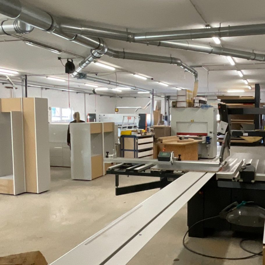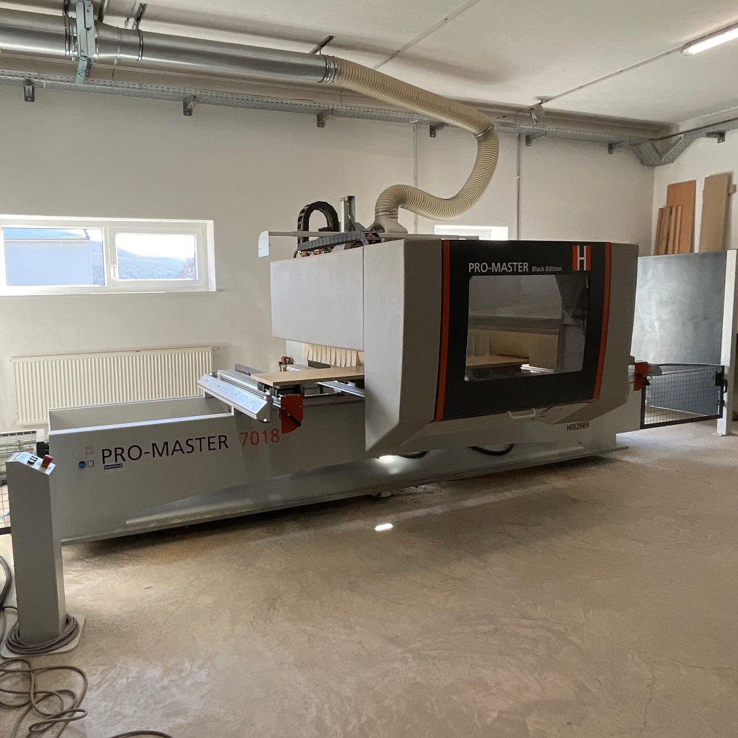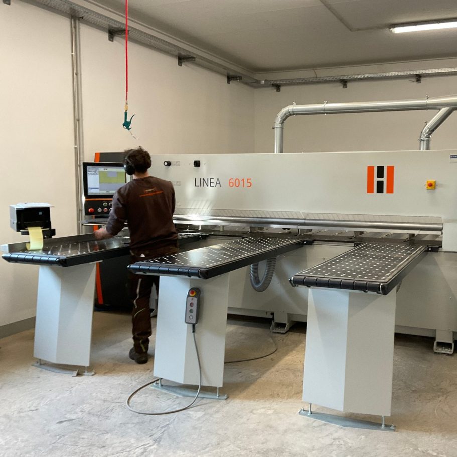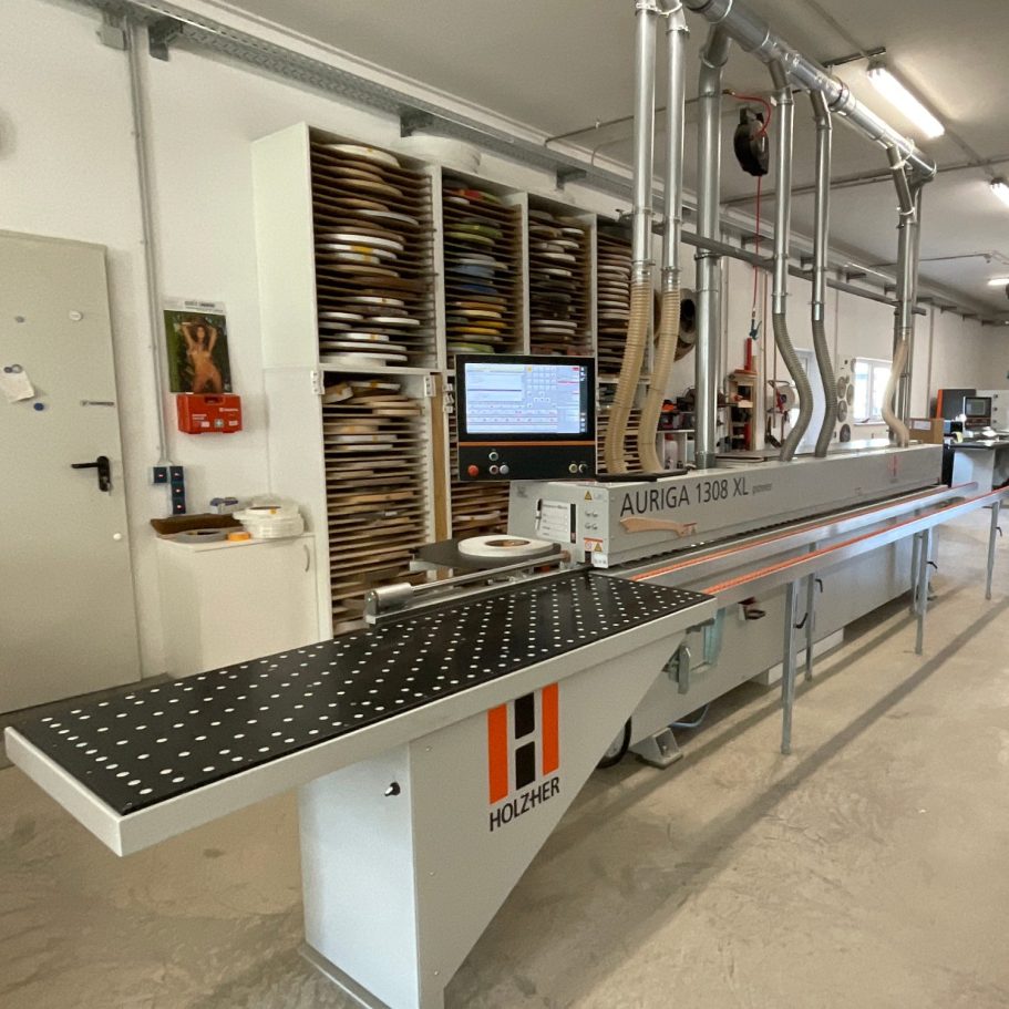 CNC gesteuerter Maschinenpark, wie HOLZHER Pro Master Bearbeitungszentrum, Linea 6015 liegende Plattensäge, Auriga XL Power Kantenanleimmaschine, Altendorf F45 Formatkreissäge und spezialisierte Holzbearbeitungsmaschinen ermöglichen eine hohe Fertigungstiefe – von Einzelstücken bis zu größeren Objekteinrichtungen. Die neue Fertigungshalle bietet optimierte Abläufe, kurze Wege und kontrollierte Qualität in jedem Arbeitsschritt. So entstehen Möbel und Innenausbau‑Elemente, die exakt passen und lange halten.