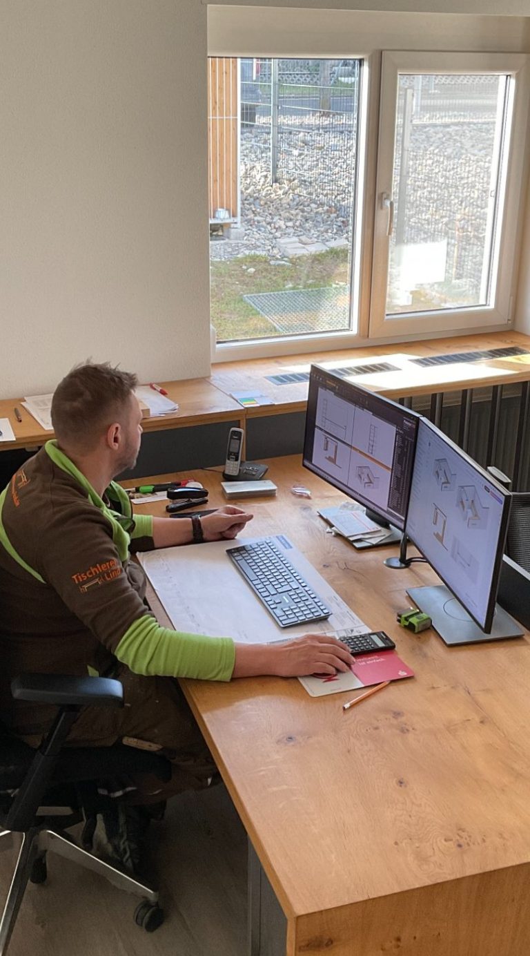 Wir verbinden traditionelles Tischlerhandwerk mit moderner 3D-Planung. Mit Palette CAD planen wir Ihre Projekte millimetergenau, visualisieren sie in realistischer Ansicht und übergeben die Daten anschließend direkt an unsere Maschinen – für eine effiziente, saubere und fehlerarme Fertigung.